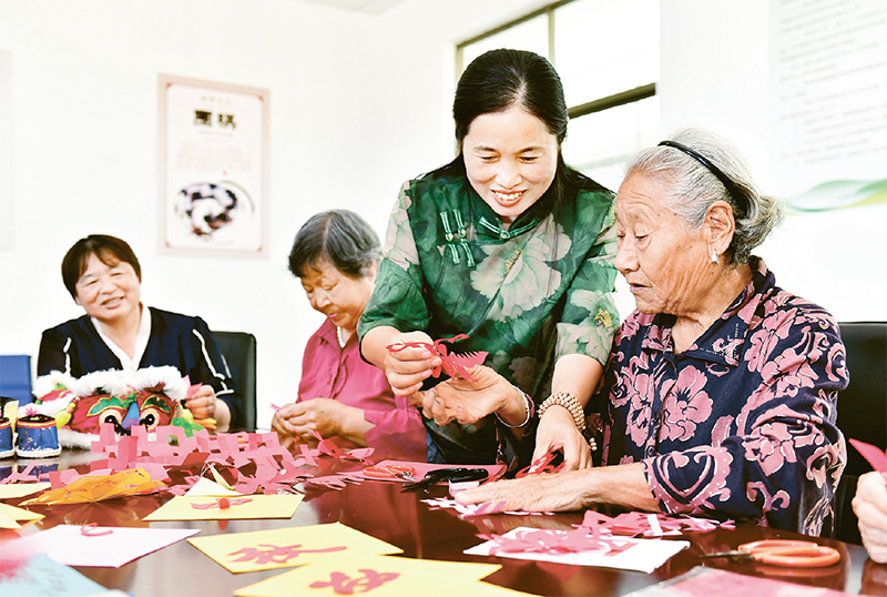 山东省菏泽市郓城县积极构建县、乡、村、家庭四级养老服务体系,全面开展“乐享式”、“敲门式”、“互助式”养老服务,不断满足老年人多方面需求,让老年人有一个幸福美满的晚年。图为2023年9月22日,在郓城县郓州街道王沙湾社区日间照料中心,老人在学习剪纸。 新华社记者 郭绪雷/摄